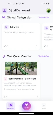 Vatandaşlık görevlerinizi avucunuzun içine taşıyan yeni nesil bir platformla tanışın. Gündemi belirleyen konuları anında keşfedin, derinlemesine tartışmalara katılarak görüşlerinizi özgürce ifade edin ve önemli kararlarda oy kullanarak değişimin bir parçası olun. Bu dijital buluşma noktası, her bireyin sesinin duyulmasını sağlayarak geleceği şekillendirme gücünü size sunuyor. Ortak bir gelecek inşa etmek üzere bir araya gelmiş bilinçli bir topluluğun parçası olarak, her anınızda katılımcı demokrasinin gücünü hissedin.