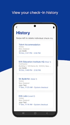 Günlük ziyaretlerinizi kolaylaştıran, iş yerlerine giriş ve çıkış süreçlerinizi dijitalleştiren yenilikçi bir çözümle tanışın. EVA Check-in, her türlü tesise hızlı ve güvenli bir şekilde adım atmanız için tasarlandı. Sadece uygulamanızdaki kamera ile veya telefonunuzun kendi kamerasıyla, tesislerde bulunan EVA Check-in QR kodlarını tarayın. Kişisel bilgilerinizi anında onaylayın, ziyaret ettiğiniz bölümü seçin ve iş yerinin talep ettiği ek soruları zahmetsizce yanıtlayın. Ayrıldığınızda ise aynı kolaylıkla uygulama üzerinden çıkışınızı gerçekleştirin. Bu sayede, ziyaret ettiğiniz tüm EVA Check-in destekli lokasyonların kişisel kaydı güvenle cihazınızda tutulur.
