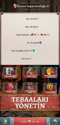 Devletin kilit mevkilerine güvendiğiniz komutanları atayın, vergileri adilce toplayın ve halkınızın moralini yükseltecek unutulmaz kutlamalar düzenleyin; tüm ülke sizin mutlak kontrolünüzde. Bizans'tan Fransa'ya, Roma İmparatorluğu'ndan Kiev Rus'a, Mayalardan diğer 70'i aşkın medeniyete kadar birçok ulus, kendilerine yeni umutlar ve parlak bir gelecek sunacak liderlerini bekliyor. İktidarı ele geçirin, kaderinizi yazın ve adınızı tarihin altın sayfalarına kazıyın. Bu geniş kapsamlı deneyim, İngilizce, Türkçe, İspanyolca, Ukraynaca ve diğer birçok dil seçeneğiyle küresel bir oyuncu kitlesine sunulmaktadır.