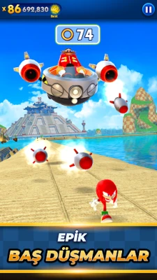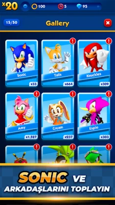 Sadece Kirpi Sonic ile değil, Tails, Shadow ve Knuckles gibi sevilen dostlarıyla da yarışma şansı sizinle. Favori karakterinizi seçin ve her zaman sinsi planlar peşinde koşan Dr. Eggman ve Sonic Lost World'den tanıdık ölümcül Zazz gibi destansı düşmanlarla yüzleşin. Sonic'in çevikliği ve hızıyla bu kötücül rakipleri etkisiz hale getirerek heyecanı doruklara çıkarın. SEGA tarafından sunulan bu eşsiz oyunda, yarış başlangıçları, kalkanlar, yüzük mıknatısları ve skor artırıcılar gibi dahiyane güçlendiricilerin kilidini açarak veya toplayarak en iyi koşucu olmak için mücadele edin. Her koşunuzda yeni oyun ödülleri kazanmak için benzersiz görevleri tamamlayın ya da günlük mücadelelerle ek karakterler dâhil harika hediyelere sahip olun.